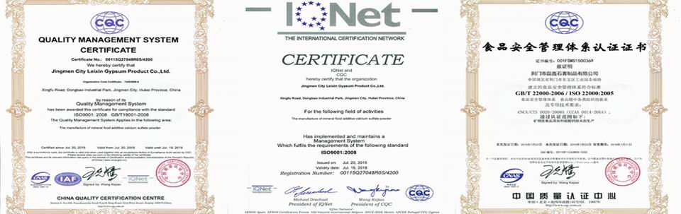 荊門市磊鑫石膏製品有限公司は石膏製品の研究、生産と販売を一體にして、一流の技術的な企業である。工場は荊門市東寶工業園に位置して、面積も25000平方メートルになります。當社は磊鑫、杰普生、凱氏蘇特という三つの商標をもって、特許も二つがある。主な製品は醫薬品グレード製品、食品グレード製品、農業グレード製品と建築材料などがある。経済的な価格と最高の品質で、當社は優(yōu)秀な製造商として、世界中に多くの有名な企業と協力しています。インポートとエクスポートの権利を持って、當社の製品は韓國、日本、ロシア、ヨーロッパなどのマーケットにもよく販売されています。お客様に対して、神様のように正直します、お品質に対して、命のように頑張ります。當社と協力することはあなたの正しい選択で、共に進むことはわたしたちの同じ目標である。今後ともご指導ご支援を賜りますよう、どうぞよろしくお願い申し上げます。 ――中國最高の石膏(硫酸カルシウム)製造商になる ――CGC·磊鑫石膏